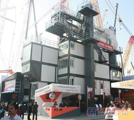王希仁:在本次展會上,鐵拓機械展出瀝青混合料原生和再生成套設備,其中再生設備的展示將成為展會上的一大亮點。本套設備具備以下特點:成套設備模塊化設計,轉場快,安裝就位將更為方便快捷;根據(jù)工程需要,可調整其添加配合比,最大熱再生料添加比例可以達到 50%;舊料破碎不破壞原舊骨料級配;獨特的舊料加熱系統(tǒng)使再生瀝青料不接觸明火,舊混合料所含瀝青不被老化,燒毀;具有專利技術干燥滾筒結構有效地防止舊料加溫過程中粘附問題,燃燒后,尾氣進入原生機組再次燃燒,排放氣體達到國家標準;采用進口傳感器計量,計量精度達到國家標準,計量精準可靠;特殊的熱料輸送機構,使熱料輸送快捷;可采用煤氣發(fā)生爐,以產(chǎn)生煤氣為燃料,節(jié)能、環(huán)保。