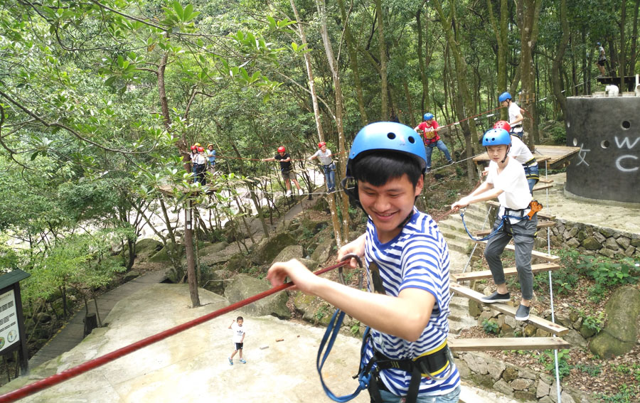 這次團(tuán)隊(duì)活動(dòng)的地點(diǎn)在風(fēng)景優(yōu)美的莆田九龍谷。在山水相依,青木環(huán)繞的美景下,技術(shù)研發(fā)中心的各位精英忘掉了炎熱,體驗(yàn)了多種精心安排的挑戰(zhàn)項(xiàng)目,有叢林穿越、高空滑索和賽竹排運(yùn)動(dòng)等等,挑戰(zhàn)力十足。