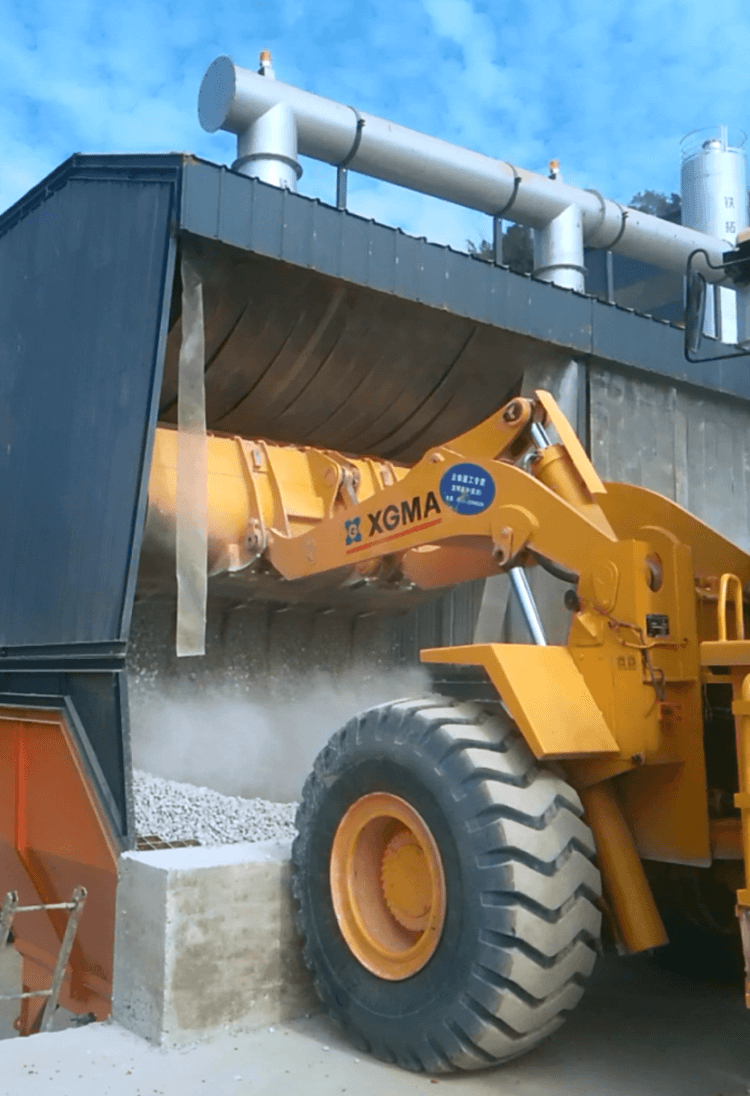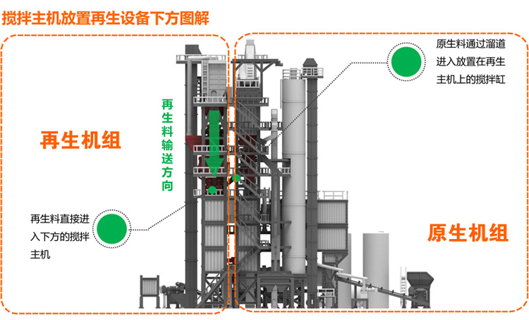 5.攪拌主機(jī)設(shè)置在再生設(shè)備正下方,使高溫RAP可直投進(jìn)入攪拌主機(jī)中。此項(xiàng)技術(shù)為鐵拓機(jī)械2010年專利技術(shù)(鐵拓機(jī)械專利號(hào):ZL 2010 2 0119177.0)。經(jīng)過鐵拓機(jī)械工程師近十年來的實(shí)際應(yīng)用驗(yàn)證,此項(xiàng)技術(shù)完全解決了高摻配比狀態(tài)下高溫再生料黏附輸送設(shè)備和投料速度慢的問題。為行業(yè)共性難題提供了完美的解決方案。